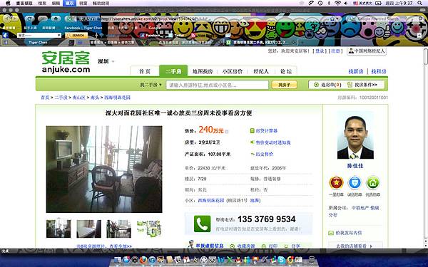 (這個是深圳市區的「公寓」...還是五年的房子..台灣的坪數算起來大約三十坪左右...不含車位....當然也是我與小內住的樓盤)