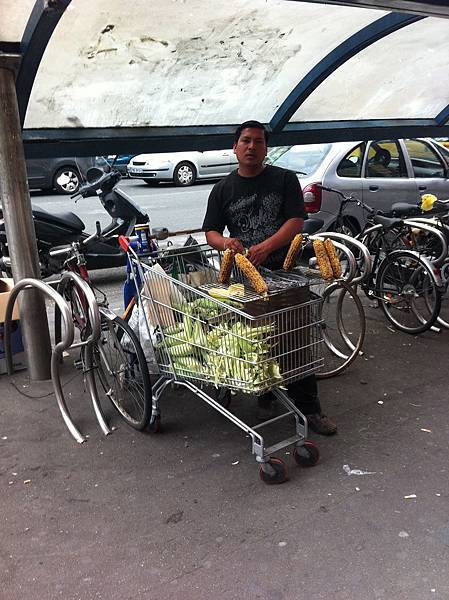 (法國路邊賣玉米的小販。我一向對這種東西沒有抵抗力。馬上買了一隻啃XD)