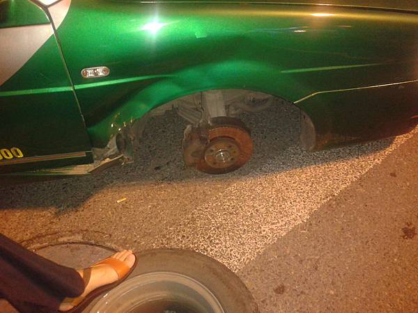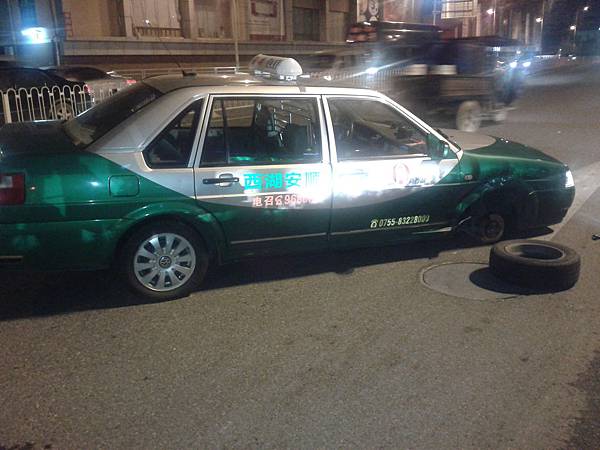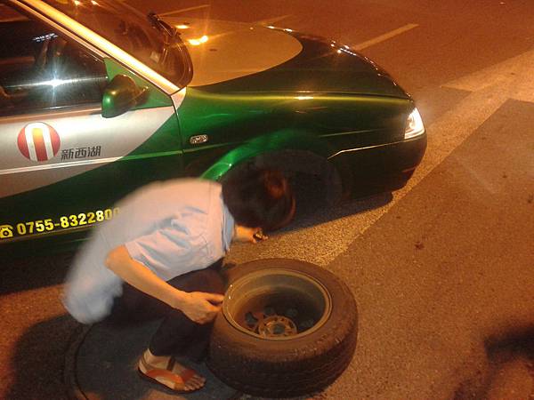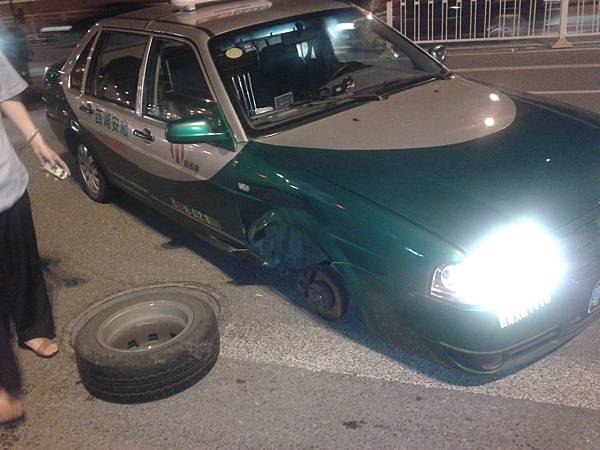 還有,看到我同事昨天坐計程車的照片,我就覺得其實爆胎烙鏈都算小兒科了...